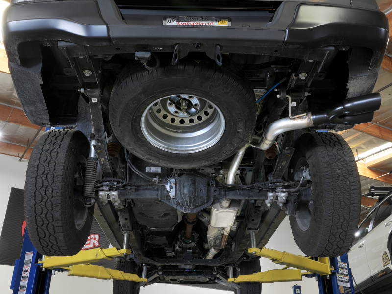 This cat-back exhaust system is constructed of 2-1/2 IN - 3 IN mandrel-bent 304 stainless steel tubing for maximum strength and durability. Finishing off this exhaust system are 304 stainless steel black clamp-on exhaust tips. The tips feature a laser etched aFe POWER logo. This system produces a throaty sound unleashing all available horsepower and torque. 100% MIG-Welded for race-proven strength and durability.