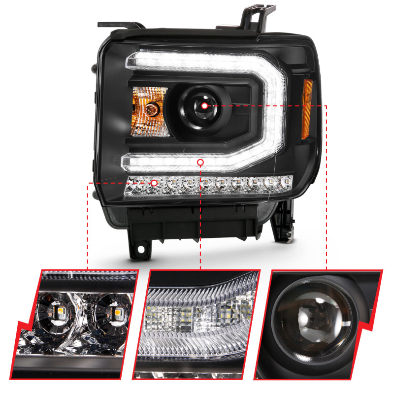 ANZO 2016-2019 Gmc Sierra 1500 Projector Headlight Plank Style Black w/ Sequential Amber Signal