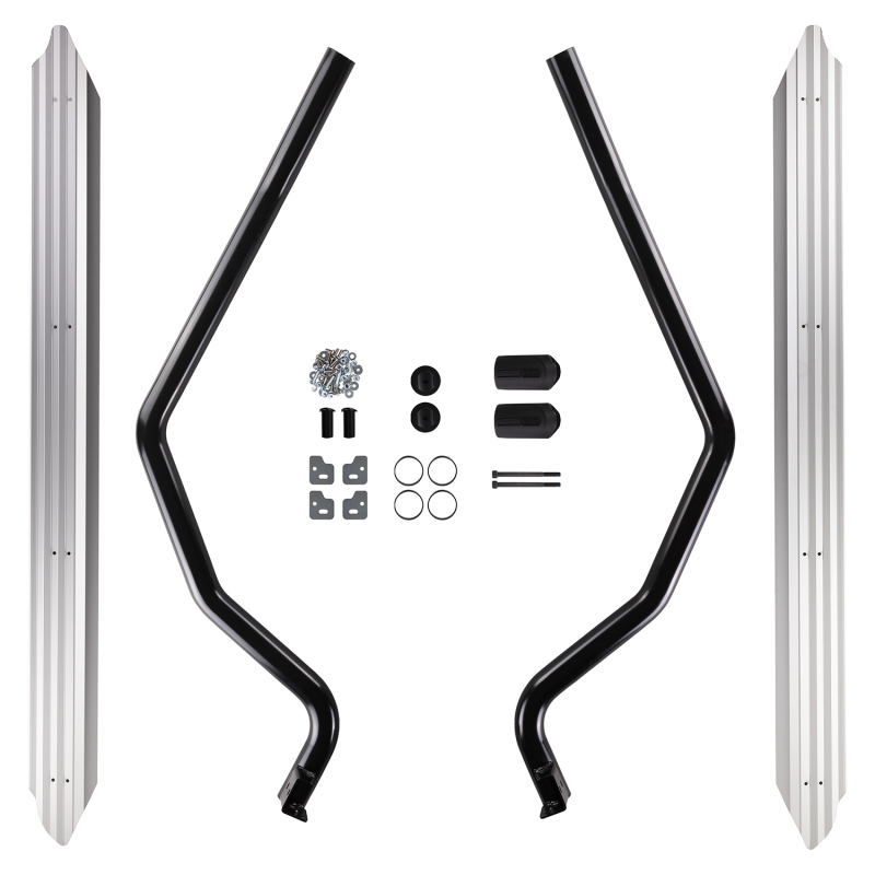 Side rail and combination steps to protect the front quarter panels and lower sills. The integrated step offers improved vehicle access. While they offer an excellent barrier against rock ledges, they are not considered a true rock slider that might be required for aggressive rock crawling.