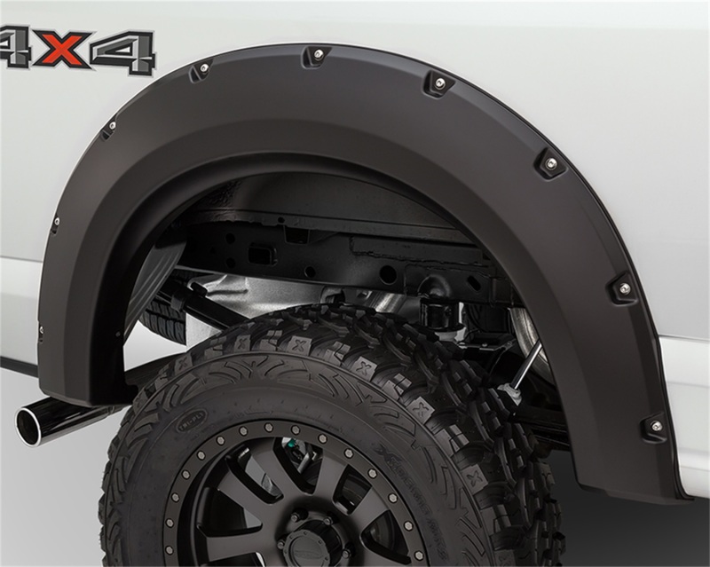 Bushwacker Fender Flares are made to be flexible enough to withstand any environment you put them in. From the debris on the roads to the brush on the trails and any other elements that wear on them every day, Bushwacker flares are designed to never relent to punishment and maintain their style. Max Coverage Pocket Style Fender Flares provides more tire coverage than standard Pocket Style flares, the Max Coverage Pocket Style Fender Flares are rugged, easy to install, and perfect for vehicles with big tires and wide wheels. Made with complete UV protection, Bushwacker flares are also backed by a Limited Lifetime Warranty against warping, cracking or other factory defects. Max Coverage Pocket StyleA? Fender Flares; 2 pc.; Rear Tire Coverage 2.6 in.; Rear Height 6.5 in.; Smooth Finish; Black;