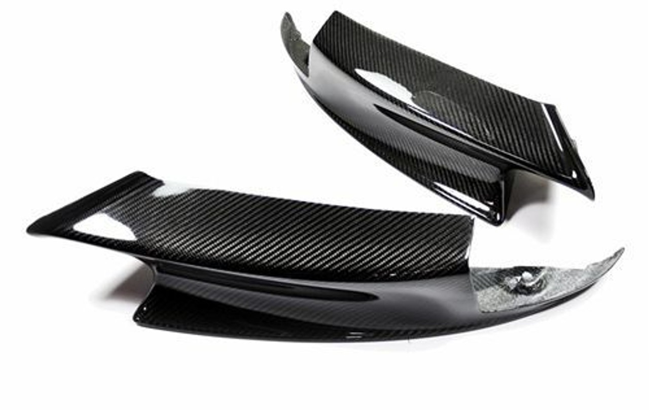 Carbon fiber front bumper splitters for the E9X M3 offer style and performance. Designed to screw directly into the lower factory bumper mounting locations, installation is fast and easy. The carbon-fiber splitters are made using 100% true vacuum technology, are super lightweight and provide function and form. These aero splitters are highly visible and highly functional. For BMW E9X M3 vehicles only