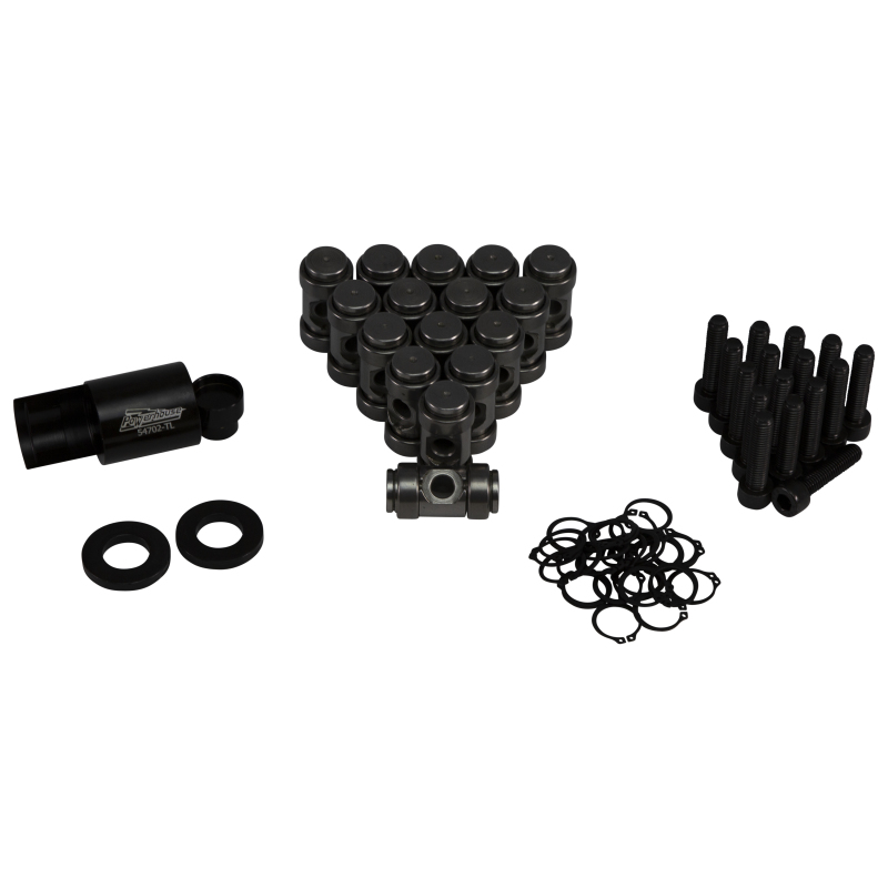 Our trunnion upgrade kit w/ disassembly tool converts a GM LS7/GEN V LT rocker into a captured trunnion for highe stability and stiffness. Compatible with stock geometry, the upgrade can be performed in 30 minutes with a C-clamp or vise.