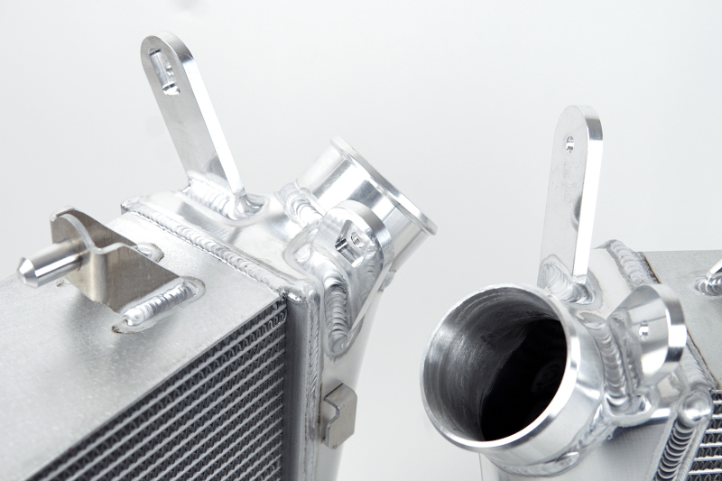 The most important feature of the CSF by PWR RS6/RS7 Intercooler System is the Formula-1 grade intercooler core. CSF's strategic relationship with PWR has allowed the inclusion of this core, which is unlike any other available in the performance aftermarket. Featuring two rows of rolled cooling tubes with inner fins, these cores make for the most efficient intercoolers available. Because of this, they are able to eliminate heat soak and lower IATs much more efficiently than traditional Bar & Plate or Tube & Fin designs. This gives us maximum performance for extended periods of time under demanding driving conditions and for vehicles with increased power levels through modifications and tuning. As with our other products produced through our PWR partnership, our new RS6/RS7 Intercoolers feature 100% TIG-welded machined billet aluminum end tanks vs. the OEM crimped cast aluminum end tanks. This feature is not only aesthetically pleasing, but is also stronger for longevity and durability on high-performance vehicles. The CNC machined billet end tanks are ready to withstand increased boost pressures from higher performance tunes, as well as upgraded turbochargers.