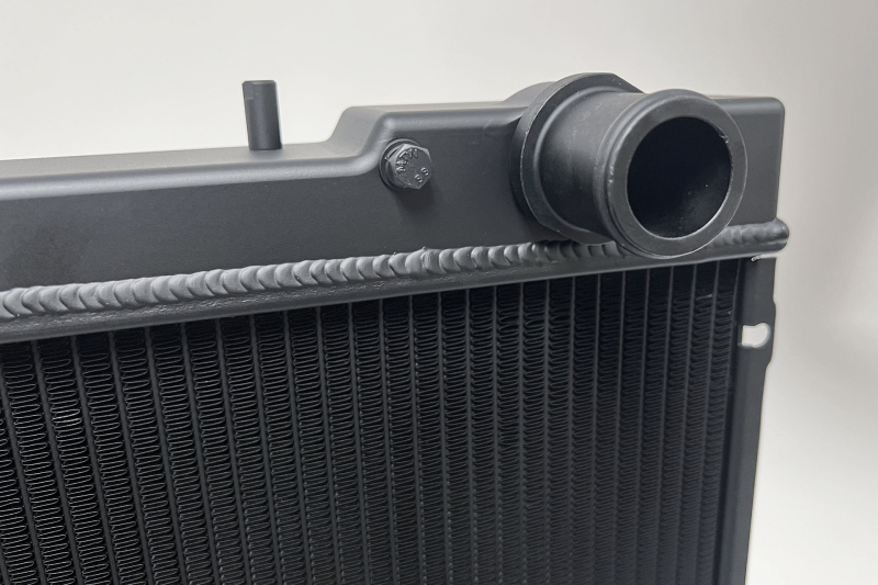 The 2-Row 42mm core greatly not only increases the fluid capacity of the radiator, but also improves the cores ability to dissipate heat. CSF's Exclusive B-Tube Technology increases the heat transfer by approximately 15% over regular oval welded tubes. In addition, the super-efficient multi-louvered fins maximize airflow through the core for the best possible performance. More cooling rows also improve the overall efficiency of the radiator. More cooling tubes means more surface area for the coolant's heat to dissipate from. Each end tank is CNC machined billet aluminum giving them incredible strength and durability. CNC machining offers incredible precision and uniformity. The results are perfectly produced end tanks that perfectly match up with the ends of the 42 mm core. Hand TIG welding joins the tanks to the core creating the strongest radiator on the market for the R32 Skyline. Each radiator includes a 1.4 bar high pressure cap with an embossed CSF logo. High pressure radiator caps raise the boiling point of coolant. This helps protect the system from boiling over at higher operating temperatures. While the radiator is designed to keep the system from reaching such temperatures, it is always good to have extra protection for situations where the coolant gets too hot. The CSF #7217B comes in Black. Also available in a raw billet aluminum finish (CSF #7217).