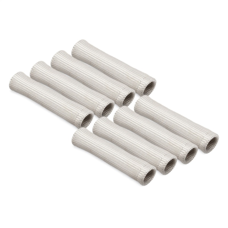 Protect-A-Boot Ringless Sleeves are superior protection for extreme angled plug wire boots that solve the problem of burning and cracking plug boots and wires from header and engine heat. DEI Protect-A-Boot Ringless Sleeves are uniquely designed to protect spark plug boots & wires against the harmful effects of direct and continuous heat - up to 1200F. Continued exposure to extreme heat generated from the engine block, exhaust manifold and headers can cause burn through, hardening or cracking of the spark plug wires and boots. Like the original Protect-A-Boots product, the ringless sleeves offer the same heat protection and double wall construction for added strength and durability, yet are designed to provide a universal fit for extreme angled, oversized, or rigid boots like ceramic ignition wire ends. The 1.25 in. I.D. at both ends and pliable construction allow the sleeves to fit multiple angled spark plug boots. Otherwise the material is the same as DEI's popular Protect-A-Boots that are made from a tightly woven high temperature resistant glass fiber material. Universal - fits multiple angled spark plug boots 1.25 in. I.D. x 6 in. length Withstands up to 1200F of direct heat Glass fiber double-wall construction