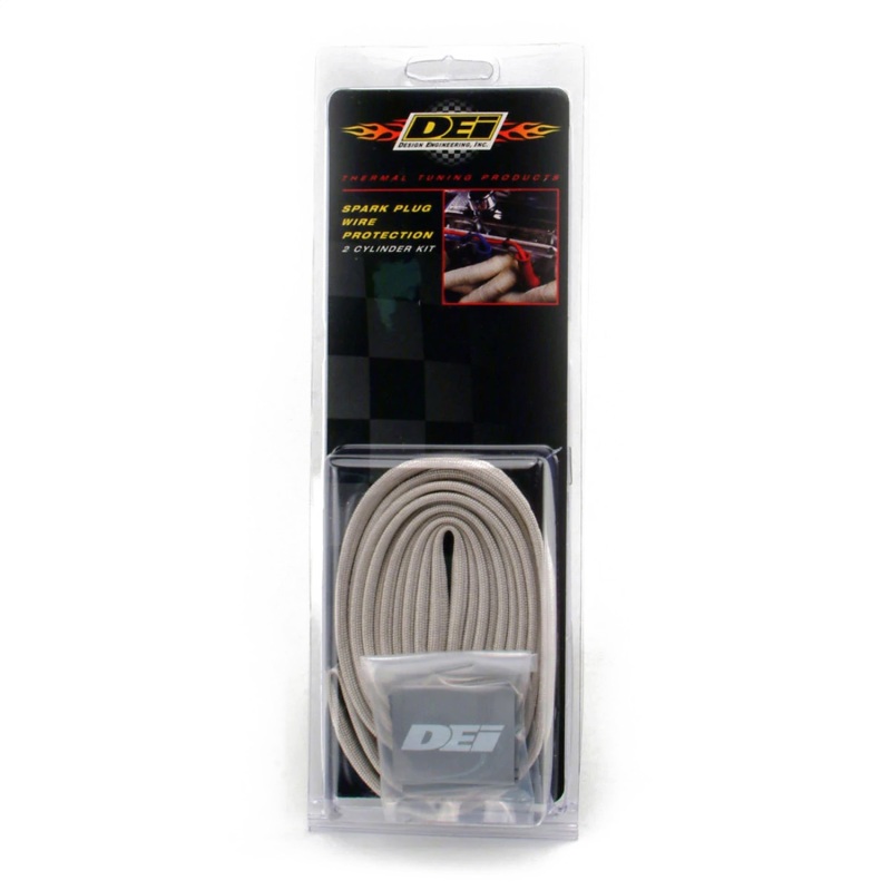 DEI Protect-A-Wire kits provide thermal protection for expensive spark plug wire sets. Protect your wires from potential burning, cracking, and hardening typically caused by severe under hood heat. DEI wire heat protection kits easily install by removing the distributor boot and sliding Protect-A-Wire(TM) over spark plug wire. Constructed from high temperature resistant glass fiber material Protects electrical wiring, speedometer cable, hoses & more 8mm ID Includes DEI Hi-Temp Boot Shrink Tubes 2 Cylinder Kit Contains: 7 feet of sleeving & 6 Hi-Temp Boot Shrink Tubes 4 Cylinder Kit Contains: 13 feet of sleeving & 12 Hi-Temp Boot Shrink Tubes 8 Cylinder Kit Contains: 25 feet of sleeving & 25 Hi-Temp Boot Shrink Tubes