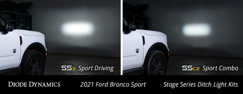 FeaturesBolt-on fitment compatible with Ford Bronco 2021+.Allows you to mount two Stage Series LED Pods above the hood.Utilizes existing mounting points and hardware for a simple installation.Thick-gauge stainless steel construction.Low-profile design. OverviewPerfect fitment. The Stage Series LED Ditch Light Kit compatible with Ford Bronco 2021+ allows you to easily mount two SS3 or SSC2 Pods above the hood. These application-specific brackets were CAD-designed to install using factory mounting points. No cutting or drilling required! This kit features a low profile design while minimizing glare and will not interfere with raising or lowering the hood.Built to last. These brackets are constructed out of thick-gauge stainless steel. Unlike other options made out of mild steel these brackets are full stainless steel and won't corrode over time. With their thick-gauge construction you also won't experience any vibration or bouncing while driving.Proven Reliability. Stage Series LED lighting has been extensively tested for long-term operation from -40 to 185 degrees F along with vibration moisture intrusion and corrosion testing. All of these tests are completed to SAE standards just like factory components. They've also been put to the test on-road by racers and enthusiasts alike.Experience. After over a decade in business Diode Dynamics is one of the most trusted names in automotive LED lighting. We directly assemble and engineer our own products in the United States allowing for higher quality and performance with the newest and brightest LED technology. No matter what you're driving we pride ourselves in offering only the best possible LED solutions. Please contact us if you'd like to discuss your lighting project!