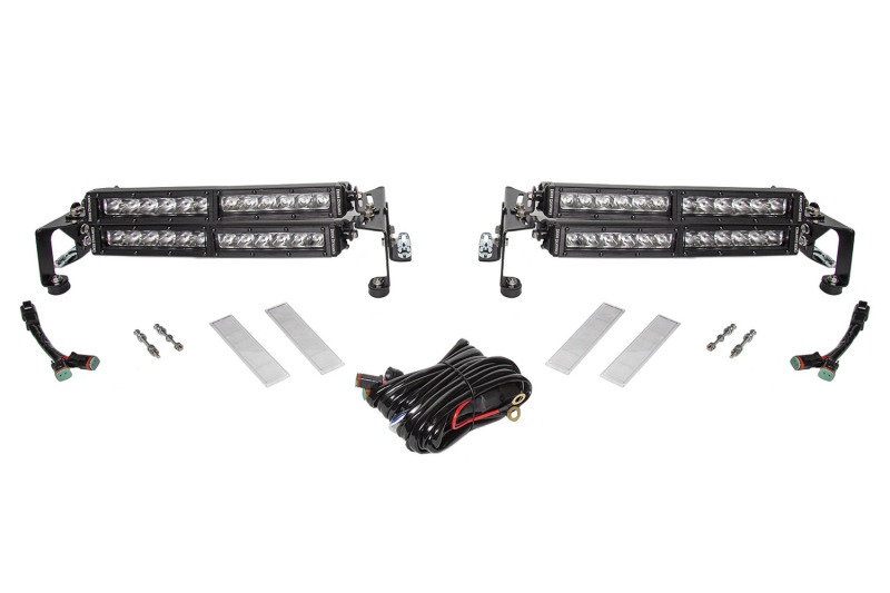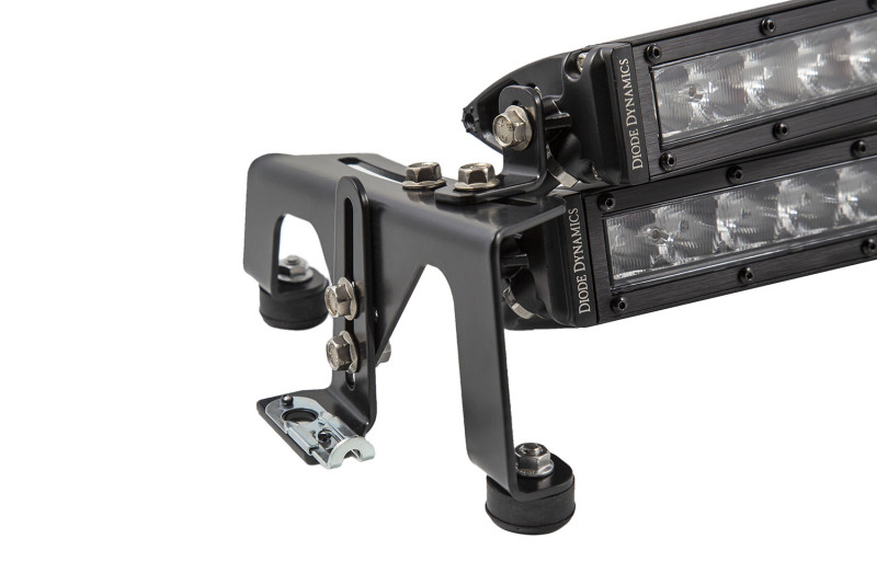 Features Rally-designed light bar mounting solution.Mount up to four 12 or 18" Stage Series light bars. Fully customizable adjust light bar angle and position.Quick release mounts for night stages with DZUS sliding lock fasteners.Highly durable 12 gauge powdercoated steel construction.OverviewDesigned for racing.The Motorsports LED Light Bar Kit from Diode Dynamics allows you to mount up to four SS12 Stage Series 12" Light Bars or SS18 Stage Series 18" Light Bar on the hood of your vehicle. The whole kit includes everything needed for installation and uses stainless steel hardware for long lasting durability including custom-made stainless rubber bumpers which absorb vibration and prevent any damage to the hood. These purpose-built brackets were CAD-designed to provide the performance you need to Go Faster and See Further. "