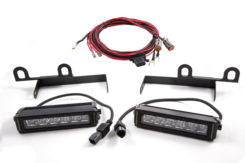 FeaturesCompatible with Dodge Ram 2013-2018.Street-legal output as Driving or Fog lights (Please check your local laws and regulations for aiming installation and applicability).Dual output wiring harness included. Highly durable powdercoated steel construction.Utilizes existing mounting points and hardware for a simple installation.CAD-designed for perfect fitment.OverviewPerfect Fitment. The LED Driving Light Kit compatible with the Dodge Ram 2013-2018 from Diode Dynamics allows you to mount a pair of SS6 Stage Series 6in Light Bars in the bumper openings. These application-specific brackets were CAD-designed to install using factory mounting points. No cutting or drilling required!Street Legal Output. This kit isn't just for off road! It is legal for on-road use as driving or fog lights (Please check your local laws and regulations for aiming installation and applicability). The Driving pattern was designed to supplement your high beams. Rather than a simple spot" pattern the Stage Series Driving pattern has a rectangular 20Wx8H degree pattern that is far more useful for directing light downrange at high speeds.Designed For Performance. Using optical simulation modeling Diode Dynamics Stage Series light bars have been designed for maximum functionality with compact size custom-engineered TIR optics and a useful beam pattern all in a highly durable package. Our light bars shine light in a highly-functional and useful beam pattern much more focused than older LEDs on the market."