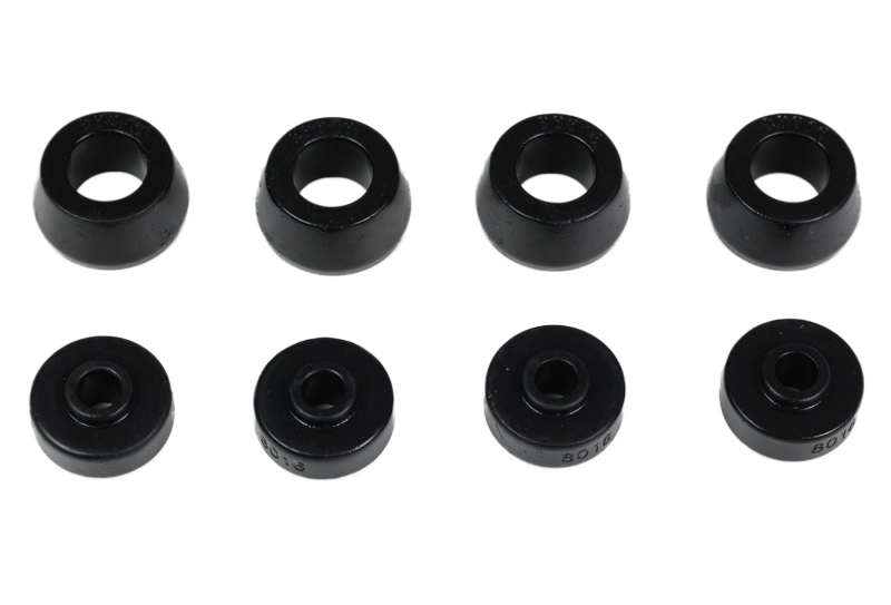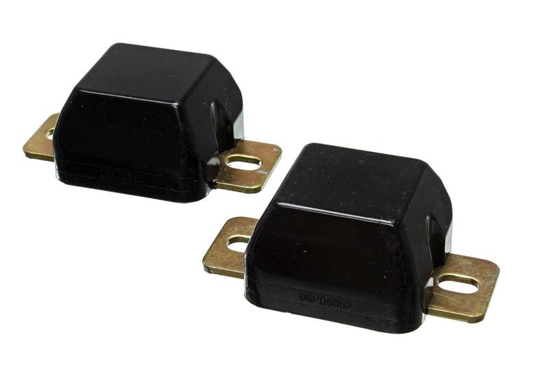 Energy Suspension(R) performance bump stops help cushion a collapsing suspension, preventing bottoming-out and expensive vehicle damage. Hyper-Flex(TM) performance polyurethane bump stops for control arms, traction bars, leaf springs, etc. are guaranteed to last longer and operate more efficiently than original rubber stops.The smaller, general purpose bullet shaped snubber is ideal for control arms. The low profile button head is for use when clearance is limited. Our large competition race style bump stops smooth out compression better and have a large reinforced metal plate welded to the mounting plate and molded-in. Each style is specially designed for a perfect and custom fit and each style has it's own durometer, hardness, characteristics. Energy's wide selection of bump stops are available in red or black color. Bump Stop Set; Black; Rear;