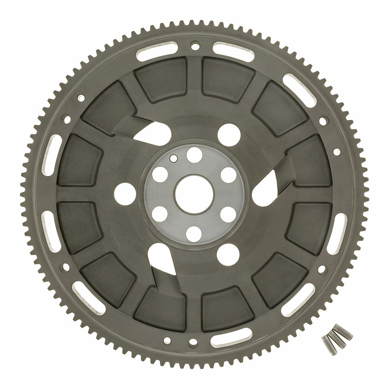 Exedy flywheels combine low weight, low inertia and high thermal capacity. They are designed for lightly tuned racing cars and drag racing, autocross and rally events, as well as street usage. They are made from solid one-piece billet chromoly steel or chromoly steel forgings. They are specifically designed to reduce weight and inertia for better engine response. Most incorporate special design features to enhance airflow and cooling of the clutch. The ring gear teeth are integrated onto the flywheel unlike an aluminum flywheel where the ring gear is pressed onto the flywheel and has the possibility of separating due to different expansion coefficients of aluminum vs. steel. Exedy steel billet and forged steel flywheels have passed engineering tests to 15,000-18,000 rpm and guaranteed not to fail to the said rpm and are all SFI approved.