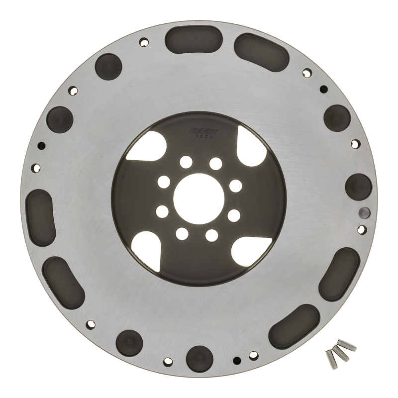 Exedy flywheels combine low weight, low inertia and high thermal capacity. They are designed for lightly tuned racing cars and drag racing, autocross and rally events, as well as street usage. They are made from solid one-piece billet chromoly steel or chromoly steel forgings. They are specifically designed to reduce weight and inertia for better engine response. Most incorporate special design features to enhance airflow and cooling of the clutch. The ring gear teeth are integrated onto the flywheel unlike an aluminum flywheel where the ring gear is pressed onto the flywheel and has the possibility of separating due to different expansion coefficients of aluminum vs. steel. Exedy steel billet and forged steel flywheels have passed engineering tests to 15,000-18,000 rpm and guaranteed not to fail to the said rpm and are all SFI approved.