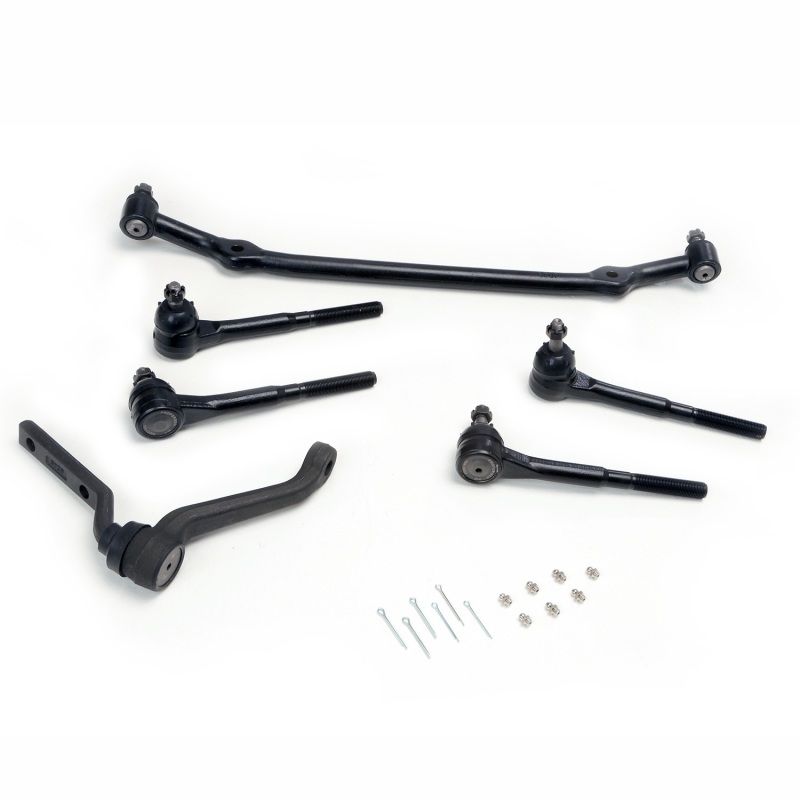 Hotchkis Sport Suspension CHESTR033 Premium Steering Rebuild Kit for 82-92 Chevrolet Camaro and 82-92 Pontiac Firebird. Kit Includes (2) Inner Tie Rod Ends (2) Outer Tie Rod Ends Center Link and Idler Arm. Heat Treated 4140 Forged Ball Studs on Tie Rod Ends for improved wear resistance Triple Lip Sealed Boots installed Hardened Steel Forged Housings for added strength Precision CNC Machined Threads and Corrosion Resistant Finish. Worn out steering parts cause poor performance and put your safety at risk. Replace your old suspension parts and upgrade your Muscle Cars suspension with one of our PREMIUM STEERING REBUILD KITS. We have sourced only the highest quality components and placed them in a convenient kit.