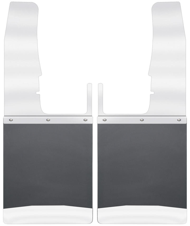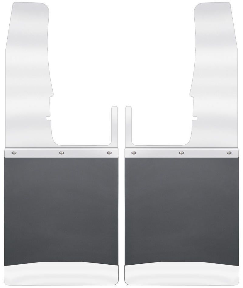 When you have a monster of a truck, you need a monster of a Mud Flap. Our KickBack Mud Flaps have an 18 gauge steel bracket that sets the mud flap back to make room for your insanely huge tires--giving you extreme protection and clearance. Fashioned from our durable AntiSpray material and your choice of 14 gauge laser-cut Stainless Steel or Textured Black Matte finish, the easy to install KickBacks will protect your beast from the rage of the road.