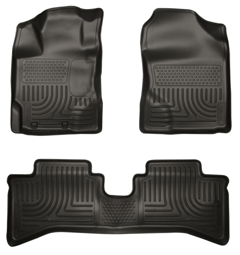 The original all-weather liner is ready, come hell or hot coffee. The Weatherbeater?s construction is a no-slip zone with zero edge curl, and its Stay Put Nibs keep it firmly anchored underfoot. It stands up to chemicals like gas, oil and battery acid, and stays tough and flexible, even under extreme temperatures. Its laser-scanned, FormFit Design? gives your truck, van or SUV an ultra-clean look with easy cleanup to match, while its patented, FormFit Edge? keeps spills contained, carpets unstained. It?s unbeatable Husky protection for life, warrantied the same. Proudly made in the USA. WB FR/2ND SEAT FLOOR LINER front and Second Seat Combo Set; Black