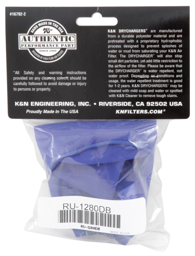 The K&N Drycharger is a silicone treated, polyester wrap that is made to cover K&N Air Filters or Personal Watercraft Flame Arrestors. These Drychargers, which are similar to the K&N Prechargers, contain uniform micron sized openings that allow high air flow. Yet, due to the Drychargers silicone treated polyester wrap, the amount of water that reaches the air filter or flame arrestor is limited. The K&N Drycharger is a silicone treated, polyester wrap that is made to cover K&N Air Filters or Personal Watercraft Flame Arrestors. They contain uniform micron sized openings that allow high air flow.