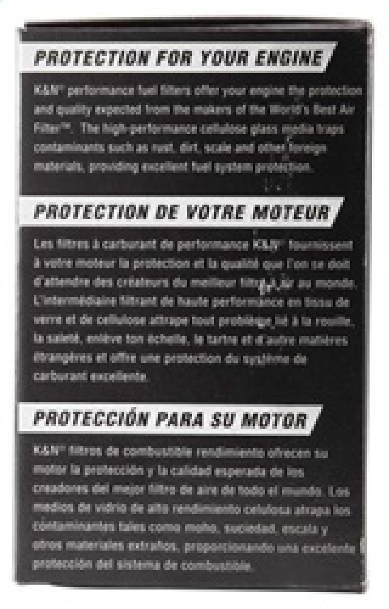 K&N Performance Fuel Filters are built for high flow rates and capacity while they provide outstanding filtration. They have a high strength carbon steel housing and a high performance rolled seam that exceeds OEM pressure requirements. Their high performance cellulose glass media traps contaminants such as rust, dirt, scale and other foreign materials. K&N Performance Fuel Filters are built for high flow rates and capacity while they provide outstanding filtration. They have a high strength carbon steel housing and a high performance rolled seam that exceeds OEM pressure requirements.