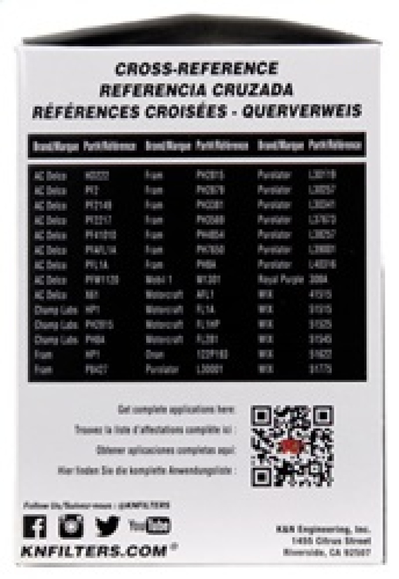 K&N Performance Silver Oil Filters have been specially designed for professional installers and service providers. Their high flow design can help to improve engine performance by reducing oil filter restriction. Our Performance Silver Oil Filters have a fluted canister shape so they can be removed with a traditional oil filter wrench commonly available to commercial installers. These Performance Silver oil filters provide outstanding filtration and engine protection throughout their service life. They are engineered to handle all grades of synthetic, conventional and blended motor oils. The pleated media provides high capacity making them suitable for extended oil change intervals when used in accordance with the vehicle and motor oil manufacturers recommendation. K&N Performance Silver Oil Filters are available for canister and cartridge type oil filter applications. K&N Performance Silver Oil Filters have been specially designed for professional installers. Their high flow design can help to improve engine performance by reducing oil filter restriction while they provide outstanding filtration.