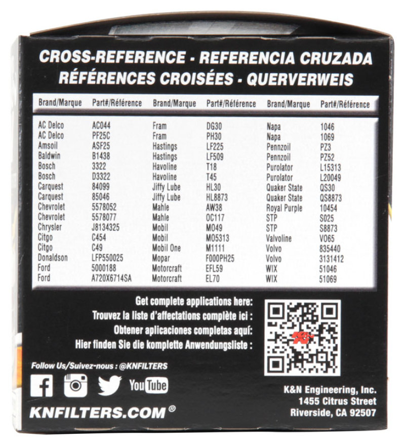K&N Oil Filter OIL FILTER; AUTOMOTIVE HP-1011