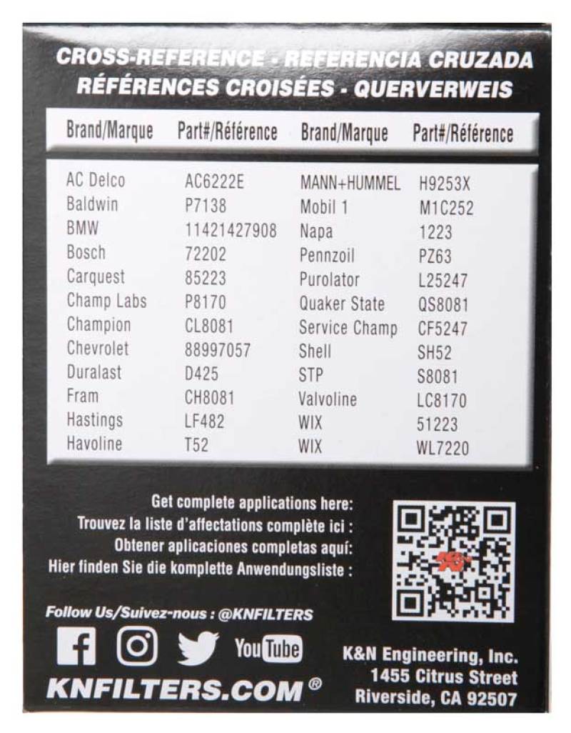 K&N Cartridge Oil Filters are designed to satisfy the needs of racers and engine builders as well as the average vehicle owner who wants the best oil filter available. K&N cartridge oil filters trap harmful contaminants while the filter's construction allows for high oil flow rates. All K&N oil filters are manufactured to meet stringent engineering standards. They are covered by a limited warranty to be free from defects in materials and workmanship when installed and replaced using engine and equipment manufacturer's recommended service intervals. K&N Cartridge Oil Filters are designed to satisfy the needs of racers and engine builders as well as the average vehicle owner who wants the best oil filter available.