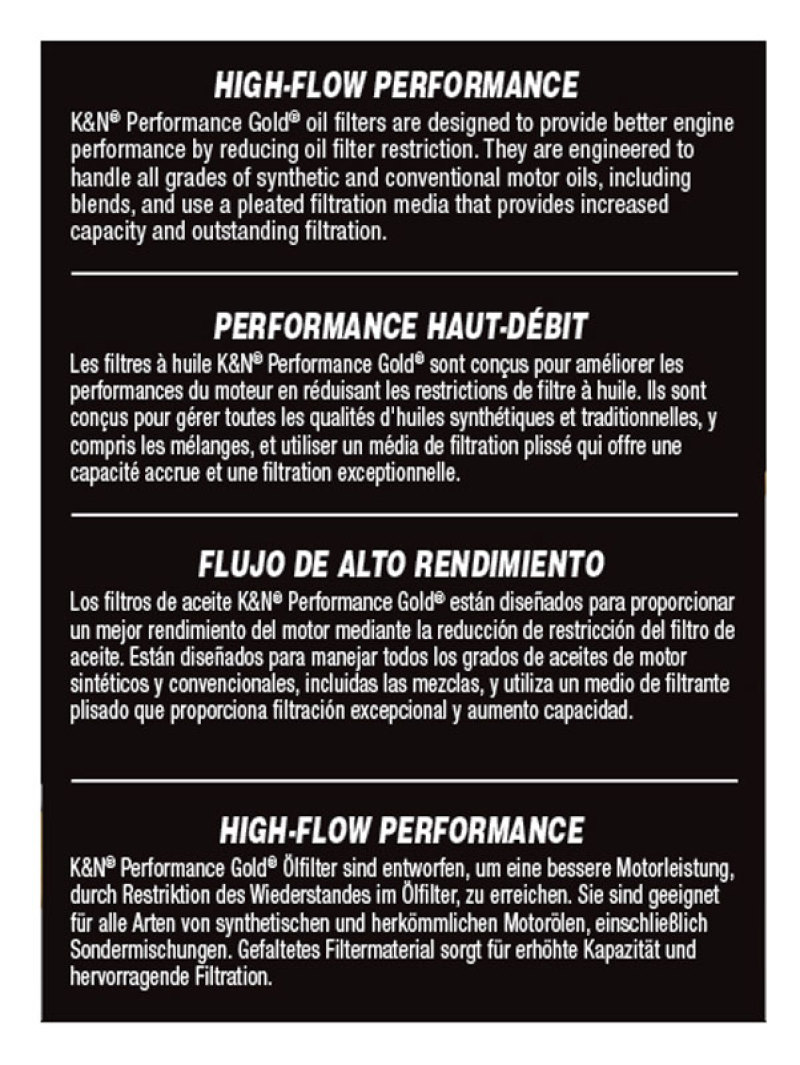 K&N Cartridge Oil Filters are designed to satisfy the needs of racers and engine builders as well as the average vehicle owner who wants the best oil filter available. K&N cartridge oil filters trap harmful contaminants while the filter's construction allows for high oil flow rates. All K&N oil filters are manufactured to meet stringent engineering standards. They are covered by a limited warranty to be free from defects in materials and workmanship when installed and replaced using engine and equipment manufacturer's recommended service intervals.