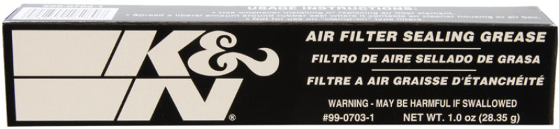 K&N Sealing Grease 99-0703-1 provides an airtight fit around sealing surfaces on all types of air filter elements. It resists heat and will not melt or run off. K&N Sealing Grease is designed to maintain a seal in severe conditions. It is not to be used on clamp-on filter elements. K&N Sealing Grease part 99-0703-1 comes in a 1 ounce tube.