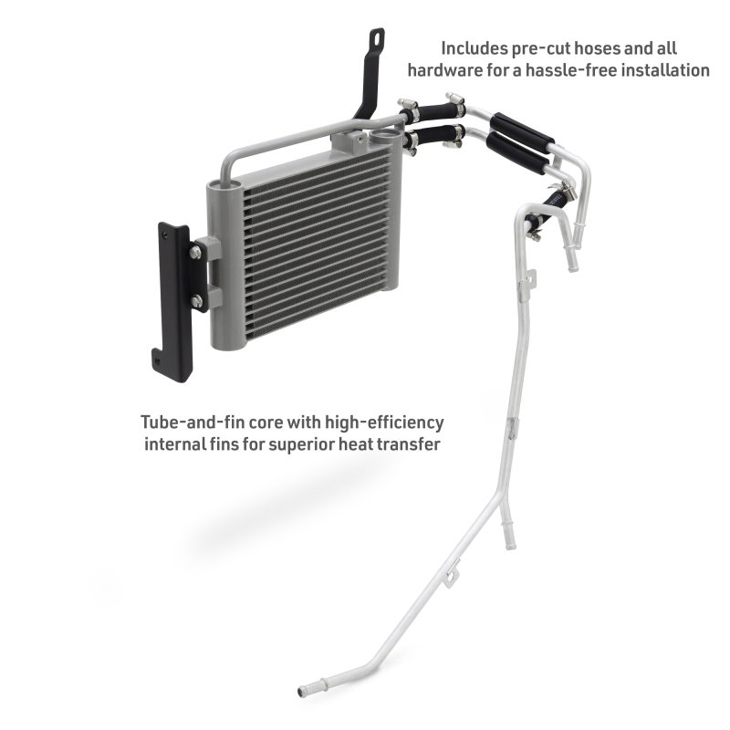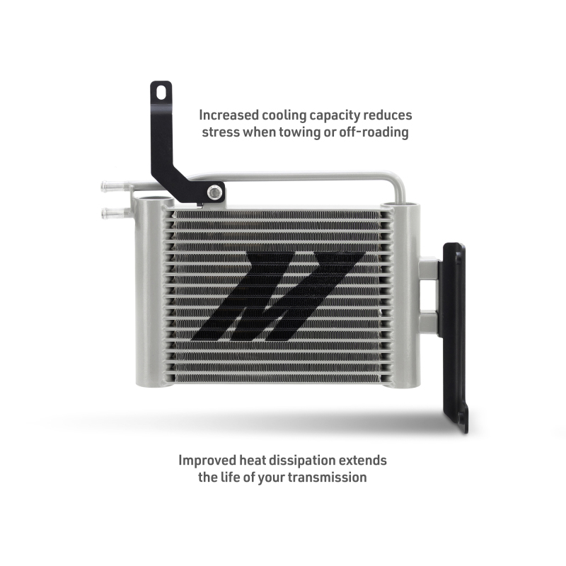 Heat is one of the biggest threats to your transmission, especially when you are pushing your 2010*2024 Toyota 4Runner to its limits on the trail or towing a heavy load. Whether you are hauling gear for work, overlanding deep into the backcountry, or simply want peace of mind on daily drives, keeping transmission temperatures in check is critical. That's why we developed a direct-fit transmission cooler specifically for the fifth-generation 4Runner.--This cooler is designed to work alongside the stock in-tank transmission cooler, adding much-needed cooling capacity without compromise. The tube-and-fin core, combined with high-efficiency internal fins, ensures maximum heat transfer to keep transmission fluid temps under control. By reducing temperatures, this cooler helps extend the life of your transmission and reduces the risk of costly failures.--Every detail of this kit is built for convenience and reliability. It comes with everything needed for installation, including pre-cut hoses and fittings that connect seamlessly with OEM or Mishimoto components. Our transmission lines meet SAE J1532 standards, giving you confidence that every connection is strong, leak-free, and built to last. A robust powder-coated finish protects the cooler against the harshest environments, while precise engineering and testing in the USA ensure consistent performance.--Whether you are climbing rocky trails, pulling a trailer, or just want a more reliable daily driver, this transmission cooler delivers the durability and efficiency your 4Runner deserves. Like all our products, it comes backed by our Mishimoto Lifetime Warranty with Accident Protection, so you can focus on the journey ahead without worrying about your transmission.