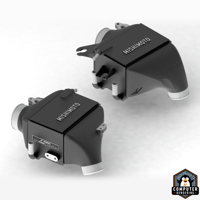 Thata**s why Mishimoto has developed our performance air-to-water intercoolers for the 2016+ Q50/Q60 3.0T. Our intercoolers feature a 49.8-percent increase in core volume over the stock intercoolers for improved heat transfer and maximum performance. That increase in core volume, combined with optimized tubes and fins, also allows our intercoolers to be over 51-percent less restrictive than stock. That means your turbos dona**t have to work as hard, and the boost pressure they generate isna**t wasted shoving air through a restrictive intercooler. All those improvements result in dyno-proven charge air temperatures that are up to 23-degrees cooler than stock. Colder intake charge temps mean your VR30 can make the most of every drop of fuel, and we were able to produce power gains of up to 8 HP and 12 lb.-ft of torque without a retune. We also know that high boost pressures require strong components, which is why we constructed our intercoolers with cast aluminum end tanks. This design eliminates potential leak points and stress concentrations that welded tanks may suffer from. The included ancillary hoses and couplers ensure coolant and air flow reliably through the intercoolers, and the included engine cover spacers let you keep your extra cooling hidden for a stealth approach. Like all Mishimoto products, these performance intercoolers for the 2016+ Q50/Q60 3.0T are backed by our Mishimoto Lifetime Warranty.