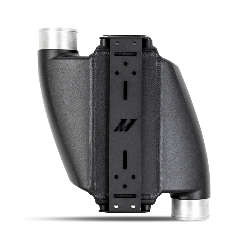 Keeping air intake temperatures low is the key to decreasing the impact of heat soak, reducing detonation, and producing consistent power output. As a result, Intercooler systems have evolved substantially over the last decade, bringing liquid-to-air intercoolers into popularity. To help bring the compact efficiency of air-to-water intercooling to your project, Mishimoto has developed a full lineup of high-performance air-to-water intercoolers. Our air-to-water intercoolers are available in single or dual-pass coolant flow configurations, each with multiple bar-and-plate core sizes and your choice of same-side or opposite-site outlets. These intercoolers support builds producing up to 1500 horsepower. When it comes to our intercoolers construction, robust is an understatement. Each intercooler features 5mm-thick cast-aluminum end tanks that are custom engineered for superb airflow, reducing overall pressure drop through the cooler. These tanks are professionally TIG-welded to our core, resulting in a pressure tolerance of up to 100 psi of boost. In addition, our intercooler design features unique CNC-machined ribbed inlet and outlet coupler connections, ensuring maximum grip between couplers and intercooler piping. Mounting and plumbing your air-to-water system can seem like a daunting task, but Mishimoto has made both tasks easy by incorporating -16ORB coolant ports into the core and providing a sturdy 1/8" thick steel universal mounting bracket. Adapting to your specific coolant line choice is easy with the Mishimoto -16ORB Aluminum Fitting selection . Mishimoto air-to-water intercoolers are finished with a sleek, durable, micro wrinkle black powder coat. As with all our products, these Mishimoto intercoolers include our signature Mishimoto Lifetime Warranty. Universal Air-to-Water Intercooler, Dual-Pass Coolant Flow