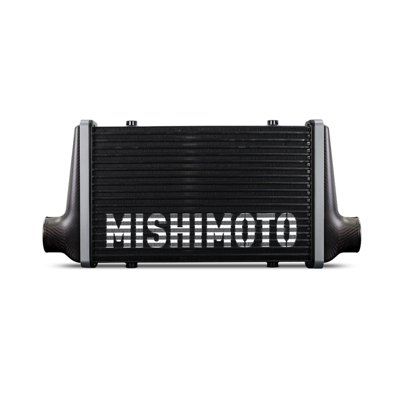 Building a performance vehicle is a quest for balance between opposing needs. Form vs function. Power vs weight. Strength vs lightness. Most of the time, one of those needs is more important to the build, so the other is sacrificed. But here at Mishimoto, we're done sacrificing. Thanks to our exclusive carbon fiber intercooler, you can have it all: aesthetics, performance, strength, and lightness all rolled into one innovative package. The end tanks are formed from solid 3K twill-woven carbon fiber. Carbon fiber gives our end tanks more strength than aluminum with 70% less weight. Three sizes of custom-engineered cores between the carbon fiber end tanks, combined with 3-inch inlets optimized for flow, ensure our intercooler is up to the task for builds producing up to 950 horsepower and 32 PSI of boost. The one-of-a-kind V-band core clamps hold the end tanks tight to the core under boost without the use of adhesives that can fail after repeated heat cycles. To ensure the end tanks can hold up to the rigors of road or track, they've been independently laboratory tested to SAE J400 standards for gravel impacts. With the Mishimoto carbon fiber intercooler, you don't have to sacrifice performance or strength for lightness. Carbon fiber isn't just strong, it's one of the most stunning raw materials available. Nothing beats the look of precisely woven carbon fiber
