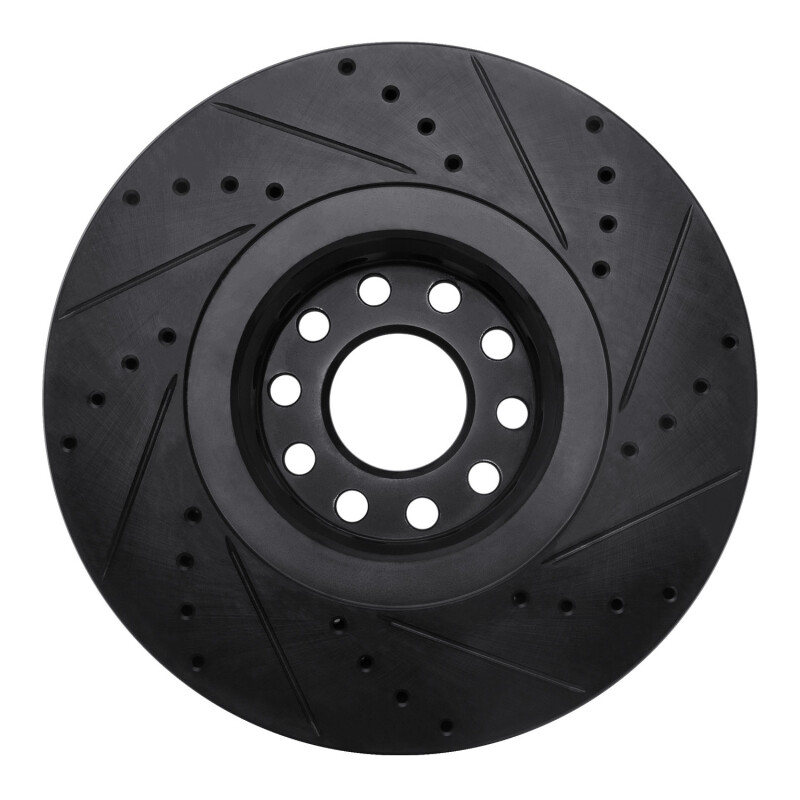 R1 00-03 Audi A8 Front Left Drilled & Slotted Black Brake Rotor