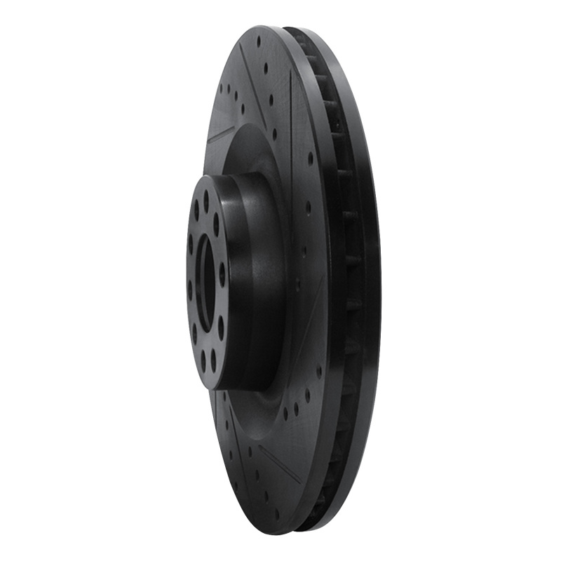 R1 01-03 Audi S8 Front Right Drilled & Slotted Black Brake Rotor