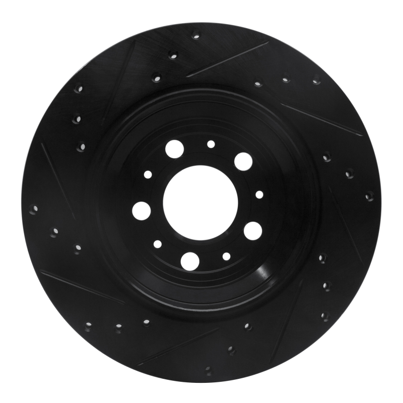 R1 03-14 Volvo XC90 Rear Right Drilled & Slotted Black Brake Rotor