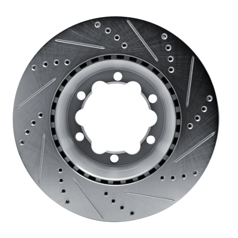 R1 06-25 American Coach PatRiot Rear Left Drilled & Slotted Silver Brake Rotor