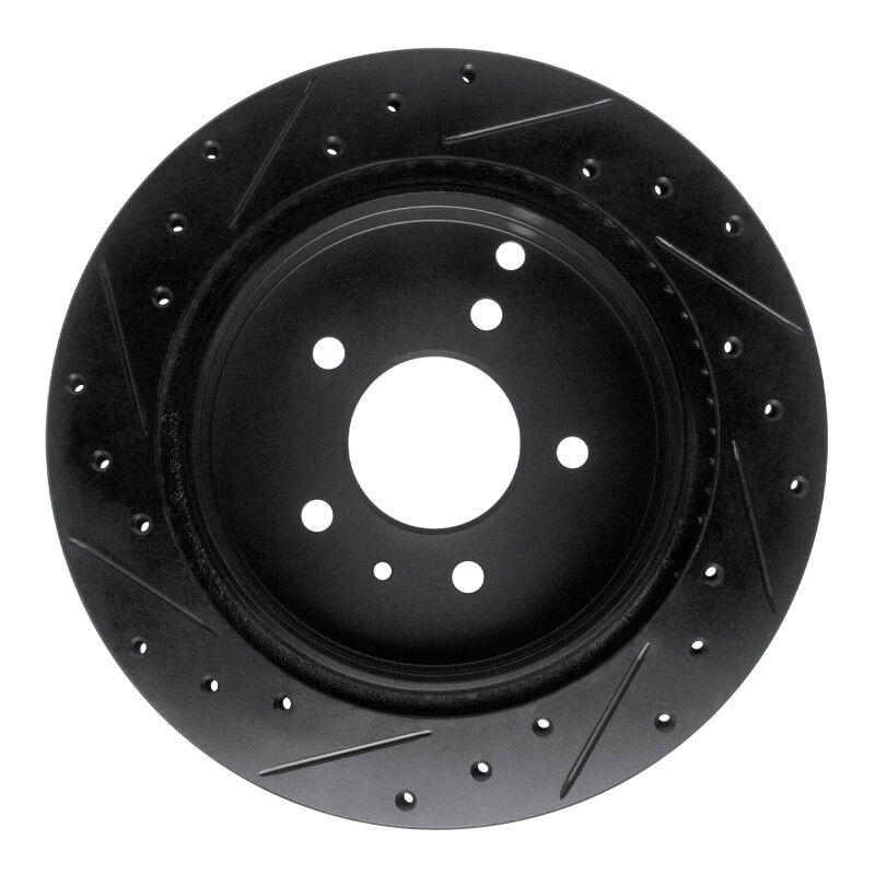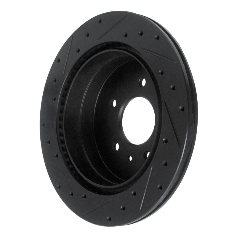 R1 07-15 Chevrolet Captiva Rear Right Drilled & Slotted Black Brake Rotor