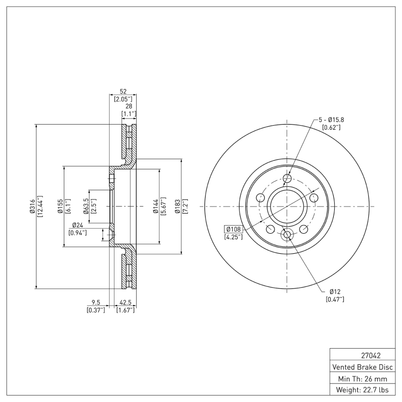 R1 07-18 Land Rover LR2 Front Brake Rotor