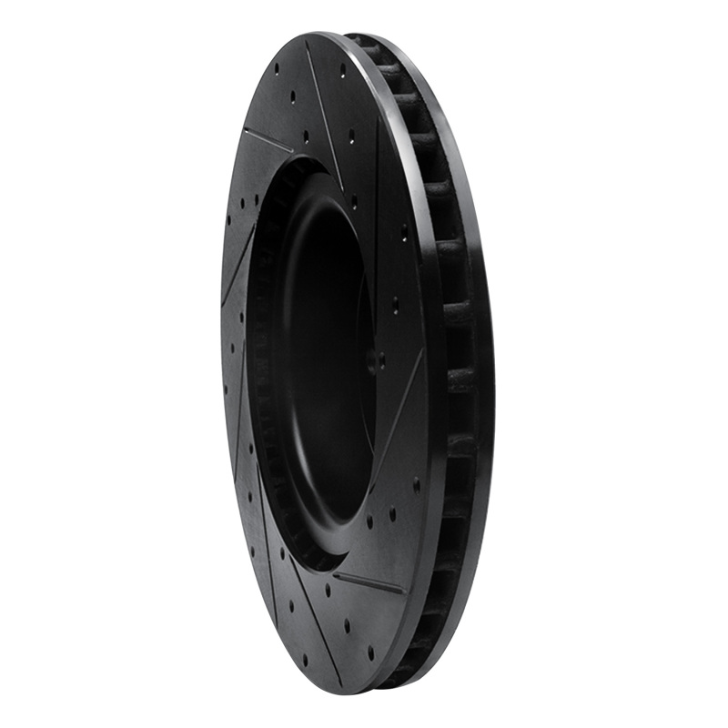 R1 12-21 Tesla Model S Front Left Drilled & Slotted Black Brake Rotor