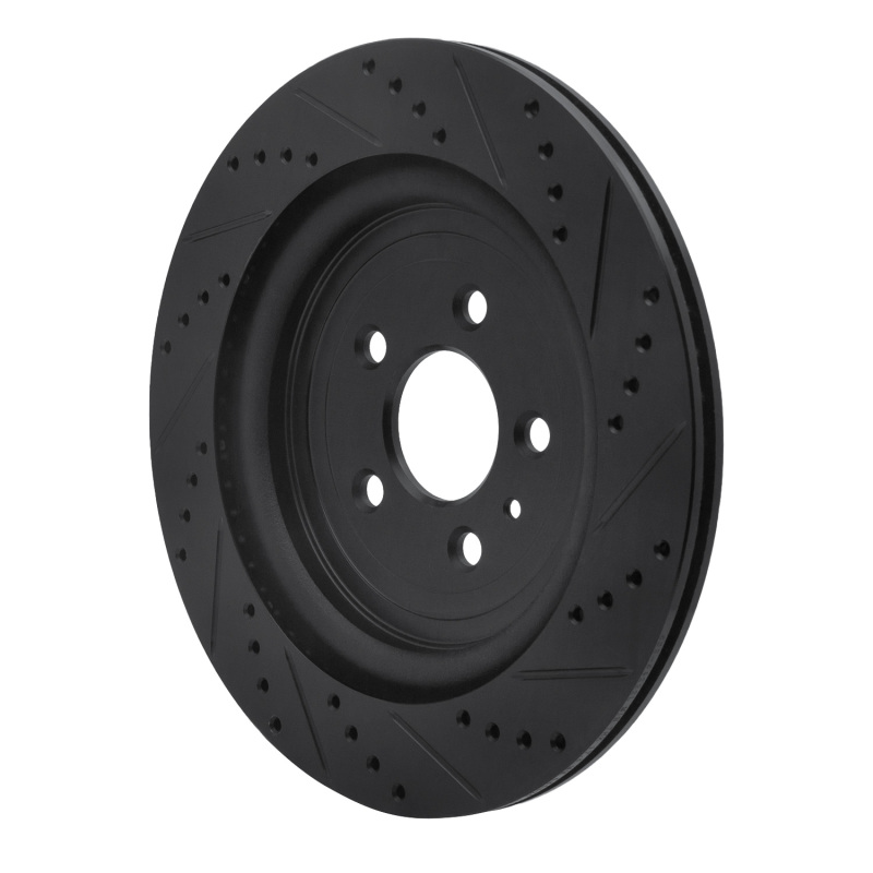 R1 13-19 Ford Police Interceptor Sedan Rear Left Drilled & Slotted Black Brake Rotor