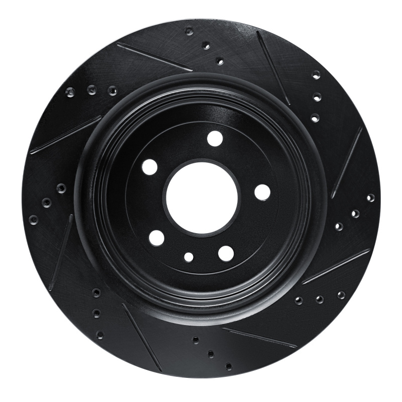 R1 14-19 Chevrolet Corvette Rear Left Drilled & Slotted Black Brake Rotor