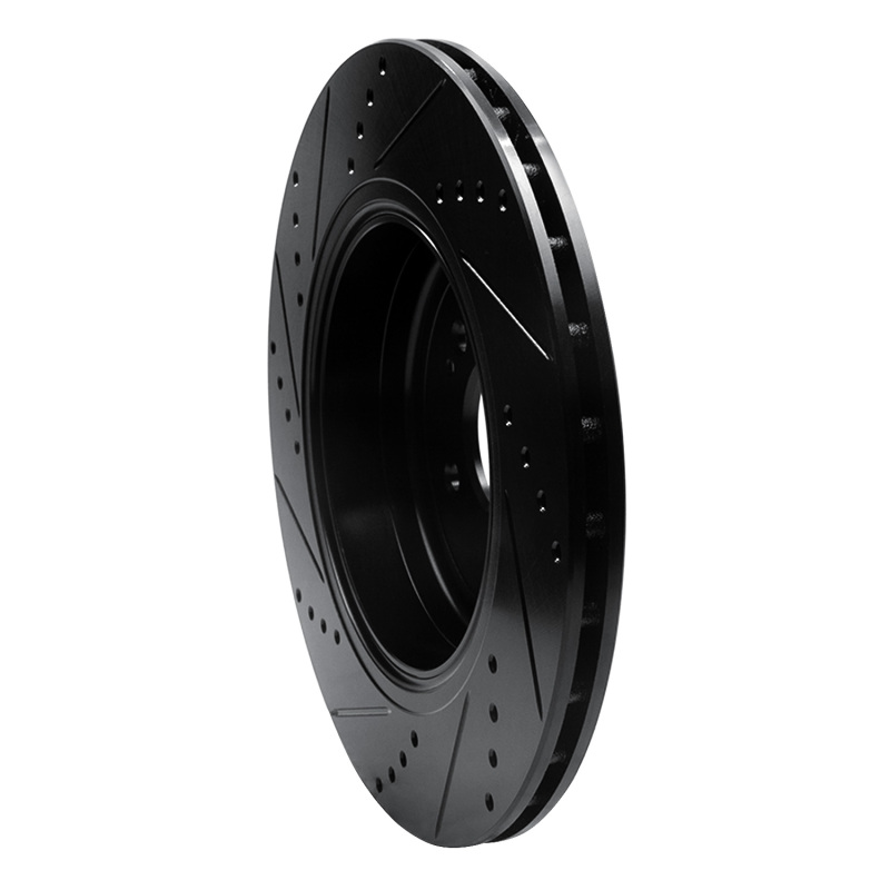 R1 18-25 Genesis G70 Rear Right Drilled & Slotted Black Brake Rotor