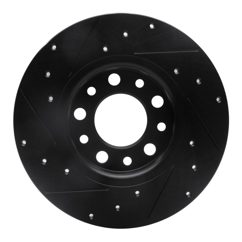 R1 2014-2022 Chrysler 200 Rear Right Drilled & Slotted Black Brake Rotor