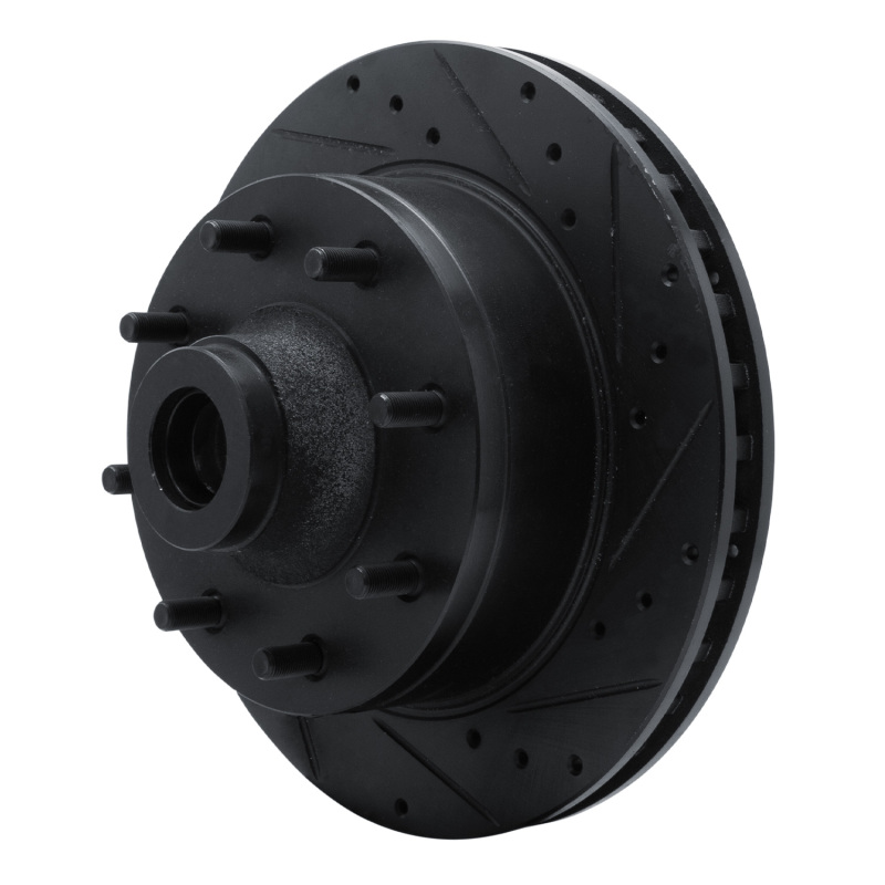 R1 78-97 Dodge B200 / B200 Van / B250 Front Right Drilled & Slotted Black Brake Rotor