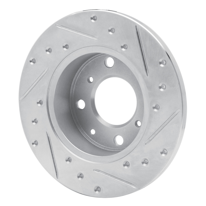 R1 79-83 Honda Civic Sedan Front Left Drilled & Slotted Silver Brake Rotor