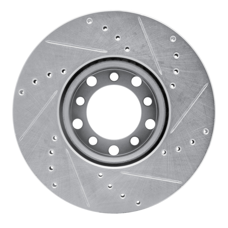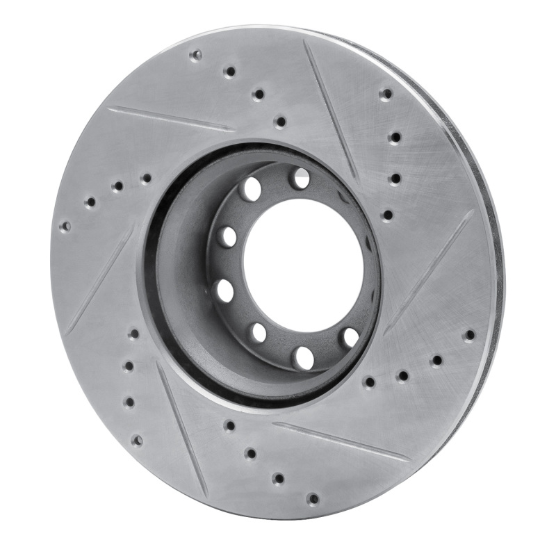 R1 79-85 Mercedes-Benz 380SL Front Left Drilled & Slotted Silver Brake Rotor