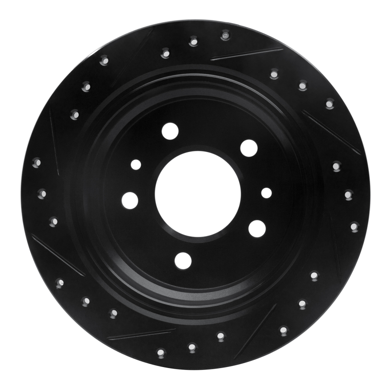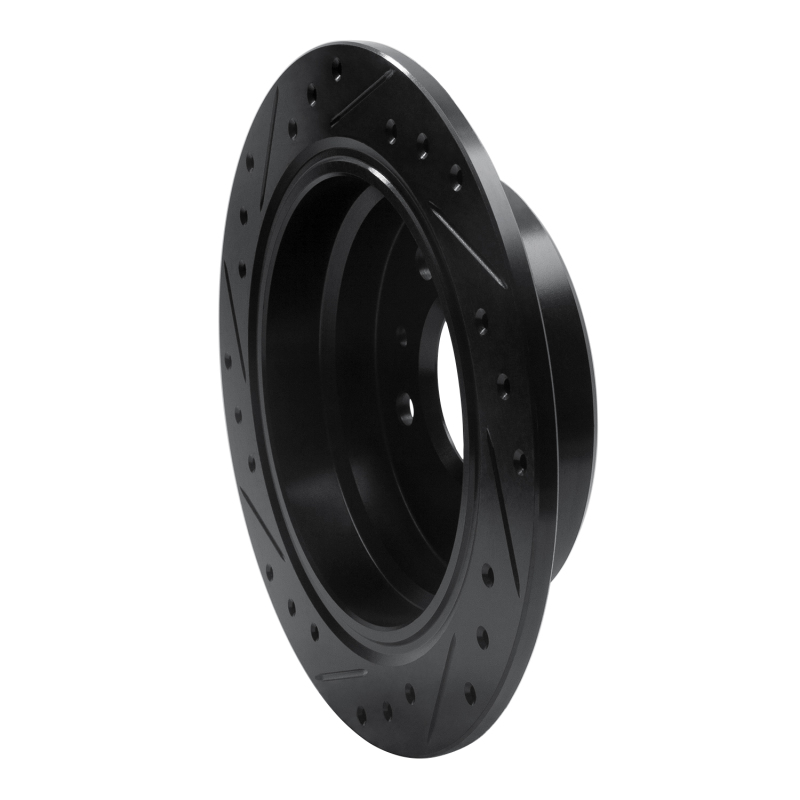 R1 82-89 BMW 524TD Rear Right Drilled & Slotted Black Brake Rotor