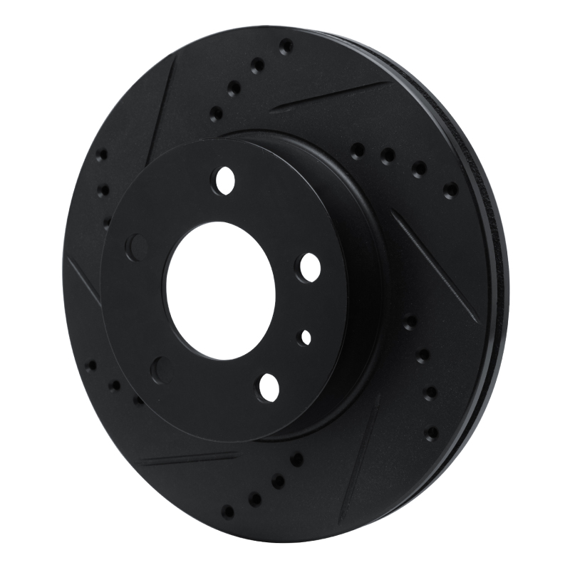 R1 82-90 Volvo 760 Series Front Left Drilled & Slotted Black Brake Rotor
