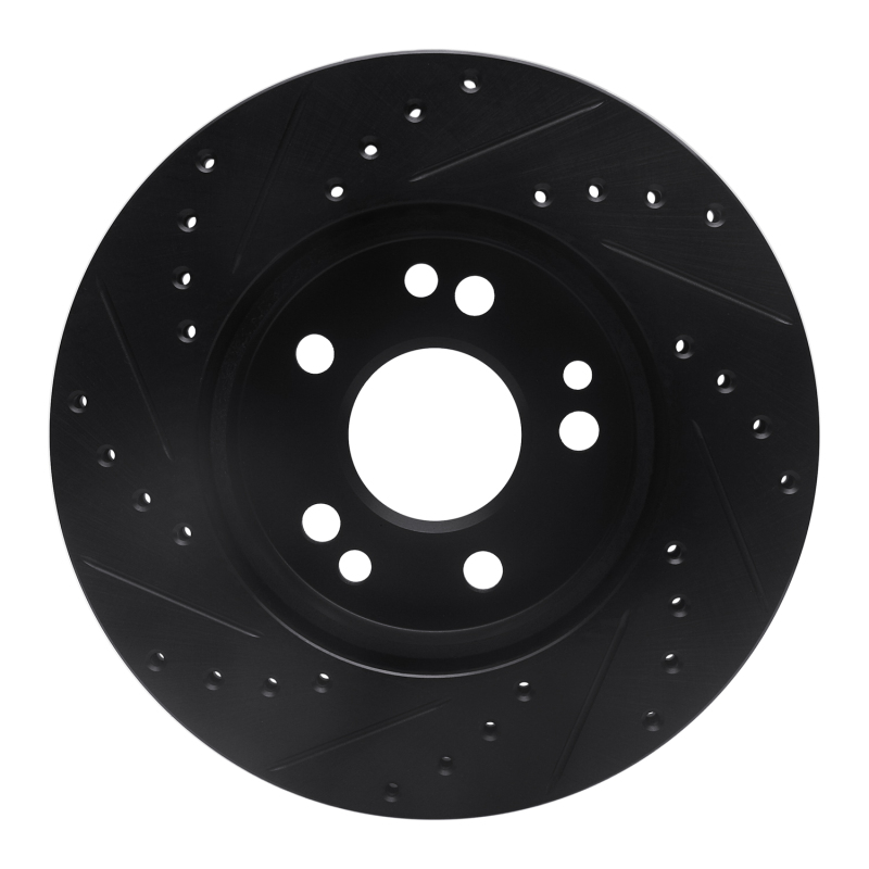 R1 84-95 Mercedes-Benz 260E Front Right Drilled & Slotted Black Brake Rotor