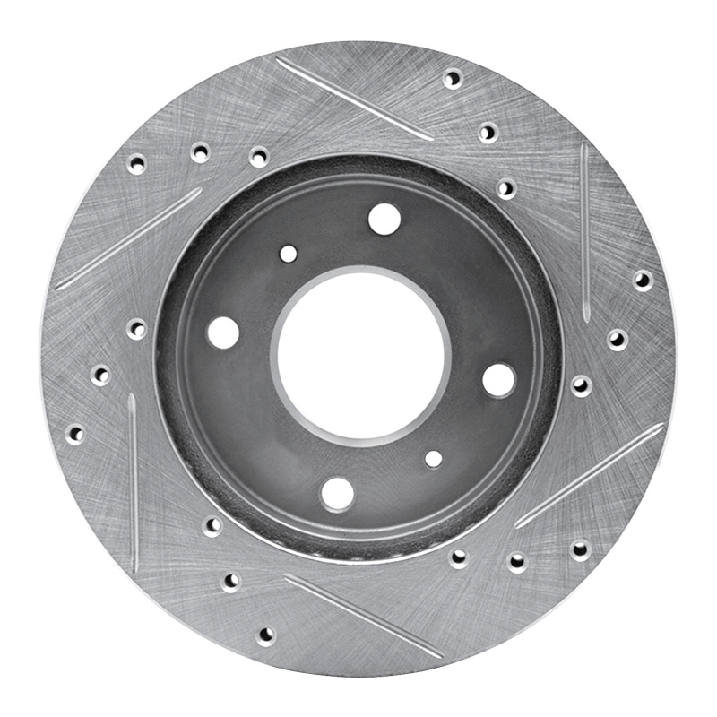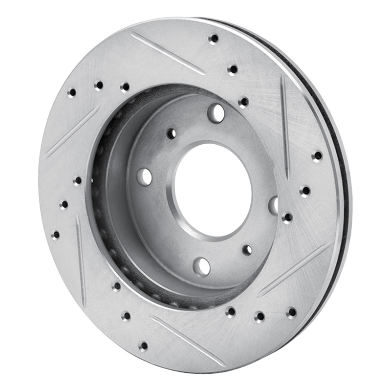 R1 85-89 Nissan STANZA Front Left Drilled & Slotted Silver Brake Rotor