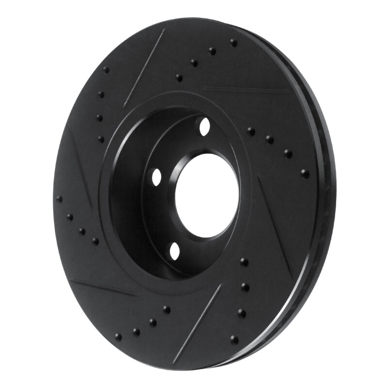 R1 85-91 Audi 5000S Front Right Drilled & Slotted Black Brake Rotor