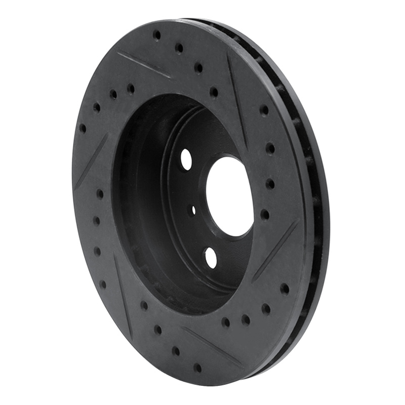 R1 86-89 Toyota Celica Front Left Drilled & Slotted Black Brake Rotor ECB-76026L